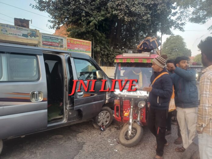 ई-रिक्शा और कार की टक्कर में आधा दर्जन घायल, मौके पर लगा जाम