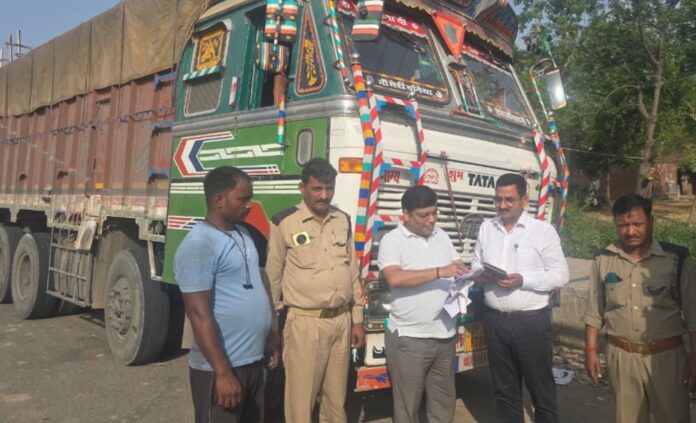 ओवरलोड माल ढोने पर 4 ट्रक सीज, 2.33 लाख का जुर्माना