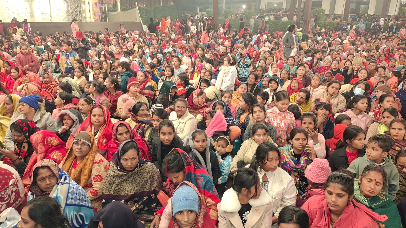 इस दौरान विधायक की पत्नी अनीता द्विवेदी भी मंच पर पहुंचीं और श्रद्धालुओं से संयम व शांति बनाए रखने का अनुरोध किया। भजन कार्यक्रम रात्रि 10:30 बजे से 1:00 बजे तक चलता रहा। भजनों के दौरान समिति के सदस्यों की व्यवस्थाओं को लेकर भी सवाल उठे, जिस पर कन्हैया मित्तल ने मंच से आयोजन समिति के प्रति नाराजगी व्यक्त की। कार्यक्रम समाप्त होने से पहले ही हजारों की संख्या में श्रद्धालु बाहर निकलने लगे, जिससे गेस्ट हाउस के बाहर सड़कों पर वाहनों की लंबी कतारें लग गईं और यातायात व्यवस्था देर तक बाधित रही।