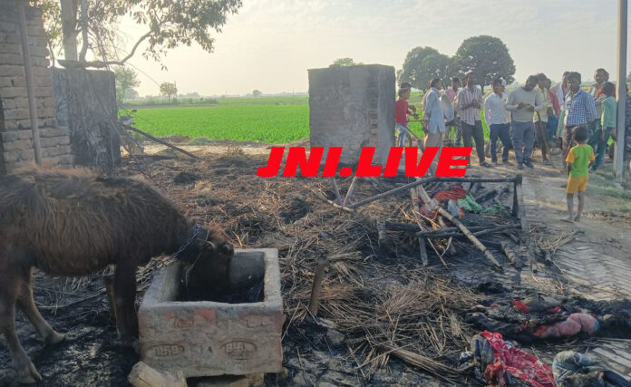 छप्पर में आग लगने से पांच भैंस झुलसी, नकदी राख