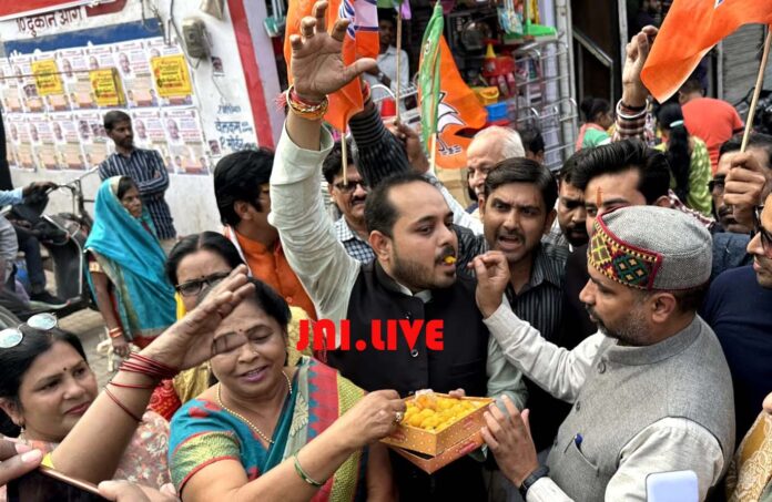 तीन राज्यों में बीजेपी की जीत पर आतिशबाजी चलाकर बांटी मिठाई