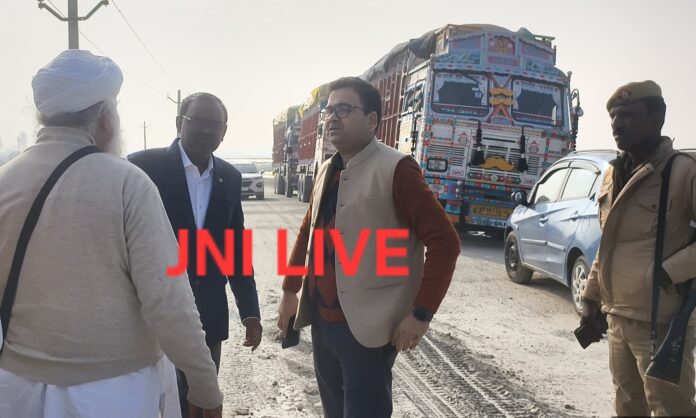 फर्रुखाबाद:(जेएनआई ब्यूरो) उपजिलाधिकारी अमृतपुर की अगुवाई में आज संयुक्त अभियान चलाकर खनन परिवहन में बड़ी कार्रवाई की गई। एसडीएम अमृतपुर संजय वर्मा व खनन निरीक्षक सुनील कुमार नें संयुक्त रूप से अभियान चलाया, जिसमे जांच के दौरान तीन ट्रकों को चेकिंग में पकड़ा गया, जिसमें से दो ट्रक बिना परिवहन प्रपत्र के पाए गए। दोनों वाहनों का ऑनलाइन चालान कर मौके पर ही धनराशि जमा कराई गई।वहीं तीसरे ट्रक को ओवरलोड परिवहन में पाया गया, जिसे थाना अमृतपुर परिसर में खड़ा कराया गया है। इस संयुक्त कार्यवाही से विभाग को कुल 1,01,440 की राजस्व प्राप्ति होगी। अभियान का नेतृत्व खनन निरीक्षक सुनील कुमार तथा एसडीएम अमृतपुर संजय वर्मा ने संयुक्त रूप से किया। प्रशासनिक कार्रवाई से खनन माफियाओं व नियम विरुद्ध परिवहन करने वालों में हड़कंप मचा हुआ है।