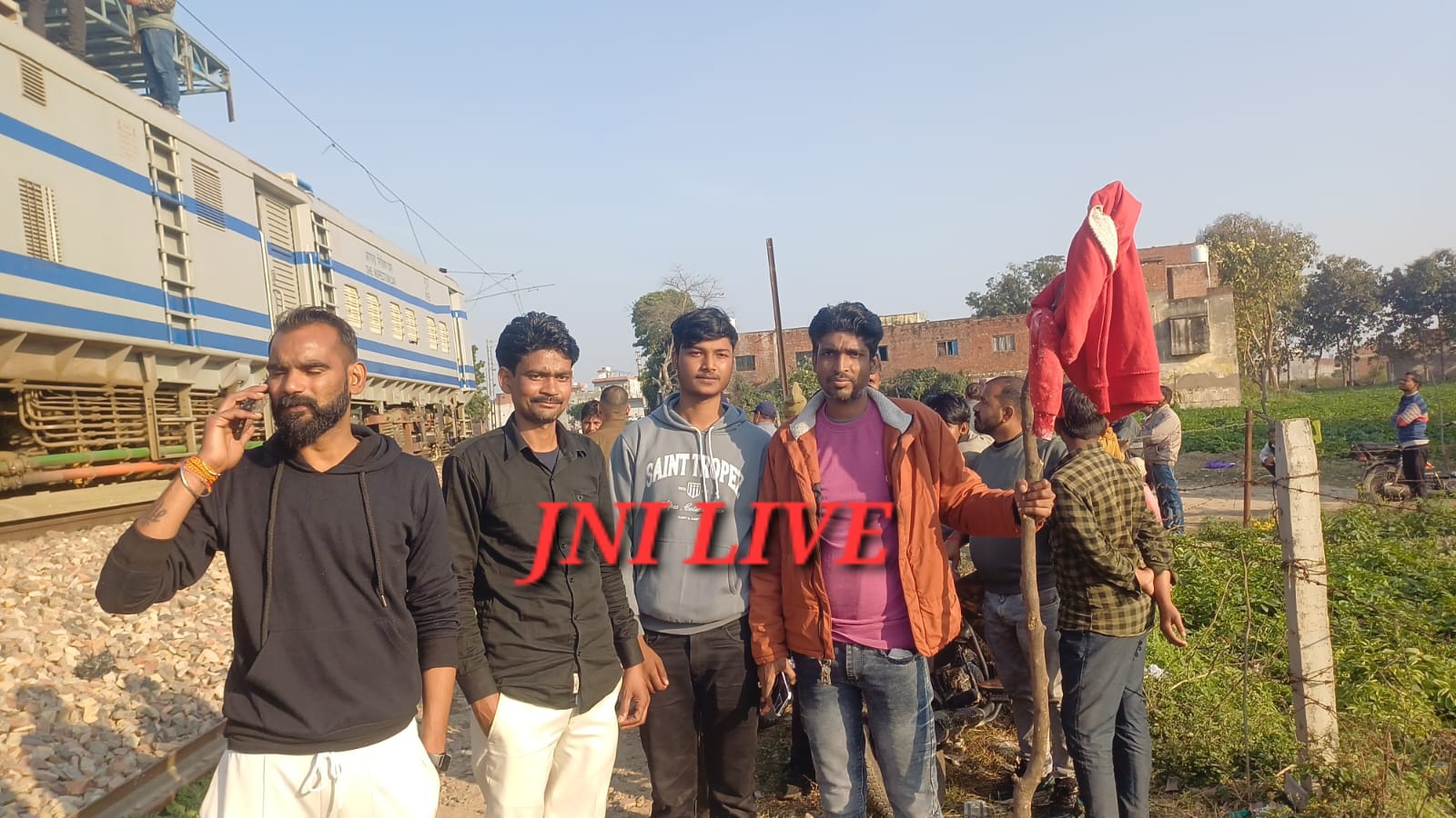 इसी दौरान फर्रुखाबाद से छपरा जाने वाली उत्सर्ग एक्सप्रेस ट्रेन आती दिखाई दी। खतरे को भांपते हुए पास के मैदान में खेल रहे युवक राघवेंद्र यादव, रूचि दास, दीपू दास व अनिकेत यादव नें ने साहस दिखाया। एक युवक ने महिला का दुपट्टा और दूसरे ने लाल शर्ट दिखाकर ट्रेन को