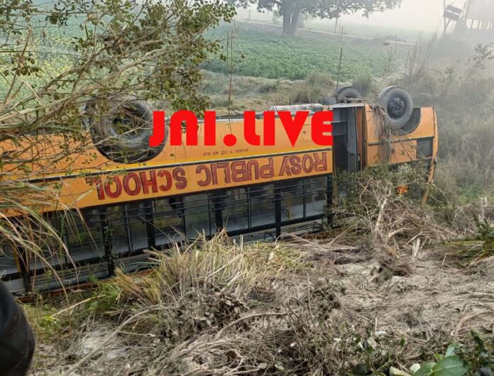 बड़ी खबर: 37 बच्चो से भरी स्कूली बस पलटी, दो सगे भाई बहन घायल