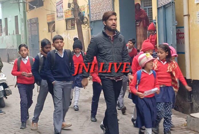 यह स्कूल नही मानता डीएम का आदेश, ठिठुरन में अवकाश के बाद भीं खुला विद्यालय