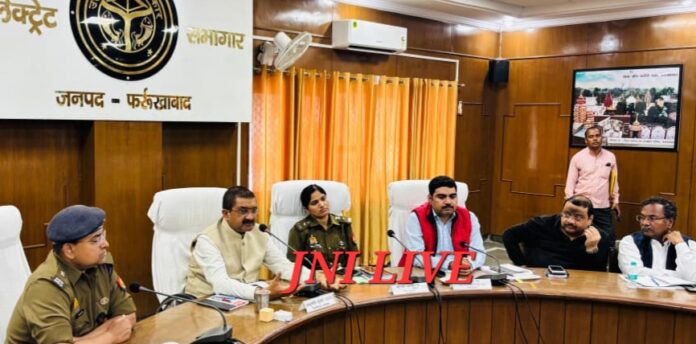 फर्रुखाबाद:(जेएनआई ब्यूरो) जिलाधिकारी आशुतोष कुमार द्विवेदी की अध्यक्षता व पुलिस अधीक्षक आरती सिंह की मौजूदगी में होली, रमज़ान एवं ईद के मद्देनज़र जिला स्तरीय शांति कमेटी की मीटिंग कलेक्ट्रेट सभागार में सम्पन्न हुई।