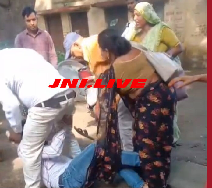 व्लाक में पूर्व प्रधान नें बीएमएम को जमीन पर गिराकर लात-घूसों से पीटा