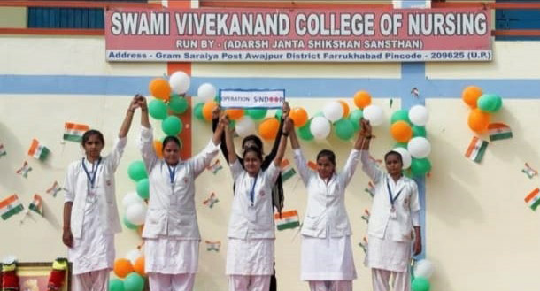 स्वामी विवेकानन्द कॉलेज ऑफ नर्सिंग फर्रूखाबाद में 79 वां स्वतंत्रता दिवस बड़ी धूमधाम से मनाया गया। कार्यक्रम की शुरूआत मां सरस्वती, मां भारती एवं महान विभूतियों की प्रतिमाओं पर पुष्पार्पण, दीप प्रज्ज्वलित कर की गयी। प्रबन्धक अनुराग दुबे सहित सभी के द्वारा ध्वजरोहण कर राष्ट्रगान किया गया।