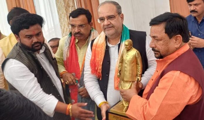 फर्रुखाबाद:(जेएनआई ब्यूरो) सांसद मुकेश राजपूत के पुत्र के विवाह कार्यक्रम में शामिल होने आये भाजपा प्रदेश अध्यक्ष भूपेंद्र सिंह समाजवादी पार्टी पर जमकर बरसे, उन्होंने कहा की सपा व अन्य विपक्षित दलों का एजेंडा निगेटिव है| बेबर रोड़ बघार मेडिकल कॉलेज में आयोजित विवाह कार्यक्रम में प्रदेश अध्यक्ष ने कहा की पार्टी का 25 सितम्बर से 25 दिसम्बर तक आत्म निर्भर भारत अभियान चल रहा है, वही सरदार बल्लभ भाई पटेल की जयंती को राष्ट्रीय एकता दिबस के रूप में मनाने का अभियान चलाया जा रहा है| वह सपा सुप्रीमों पर हमलावार दिखे, उन्होंने कहा की सपा व अन्य विपक्षी दलों का एजेंडा निगेटिब है, सपा समाज को भ्रमित करने का कार्य कर रही है, उन्होंने कहाँ बिहार में बीजेपी नितीश कुमार के चेहरे पर चुनाव लड़ रही है,