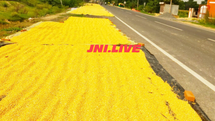 सावधान! हाई-वे पर मक्का सूख रही है.. जरा बचकर निकालें