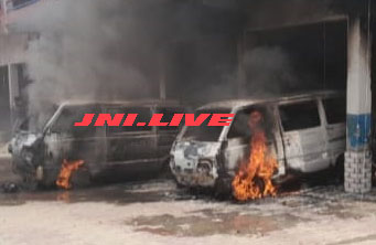स्कूल में खड़ी दो ओमनी धूं-धूं कर जलीं