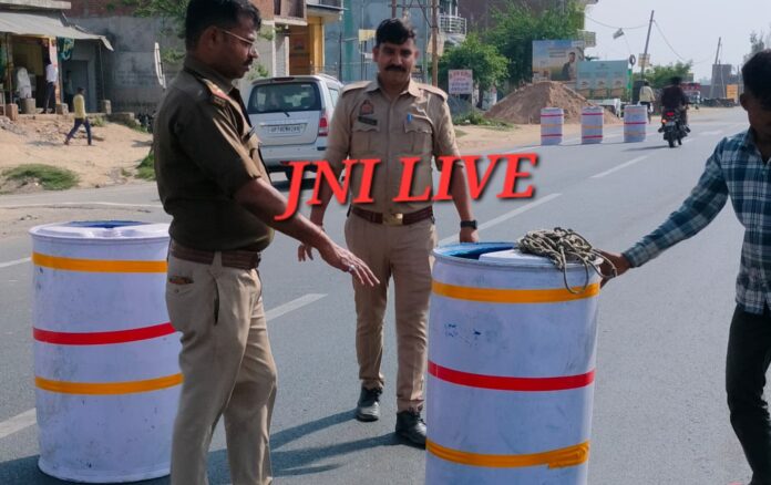 फर्रुखाबाद:(जेएनआई ब्यूरो) पुलिस अधीक्षक आरती सिंह के निर्देश पर राजेपुर थाना पुलिस ने इटावा-बरेली हाईवे पर तेज रफ्तार वाहनों पर नियंत्रण के लिए जिग-जैग ड्रम लगवाए हैं।