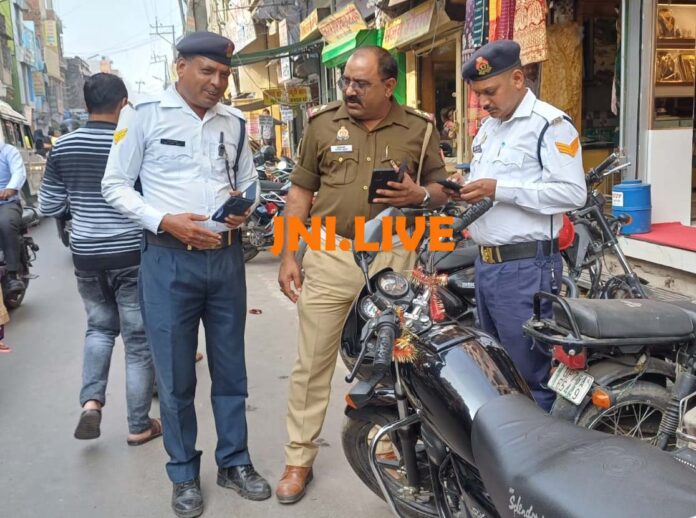मंगलवार को यातायात प्रभारी रजनेश कुमार नें यातायात पुलिस के साथ मिलकर शहर के भीतर नेहरु रोड, लाल दरवाजा, चौक, आदि जगह पर गस्त किया और सड़क किनारे गलत तरीके से खड़ी बाइकों, निकल रहीं व खड़ी कारों आदि लगभग 87 वाहनों के ई-चालान किये| यातायात प्रभारी के एक्शन से नगर में वाहन सबारों में हड़कंप मचा रहा | उन्होंने कहा कि यह कार्यवाही अब नगर में जारी रहेगी| जाम ना लगे इसका पूरा प्रयास किया जायेगा|