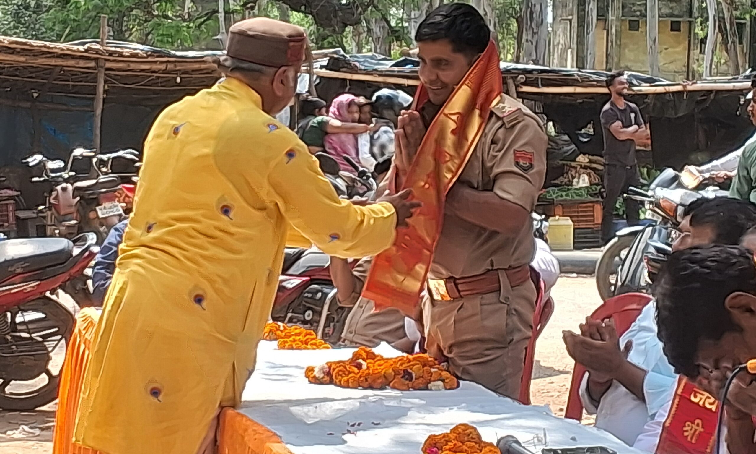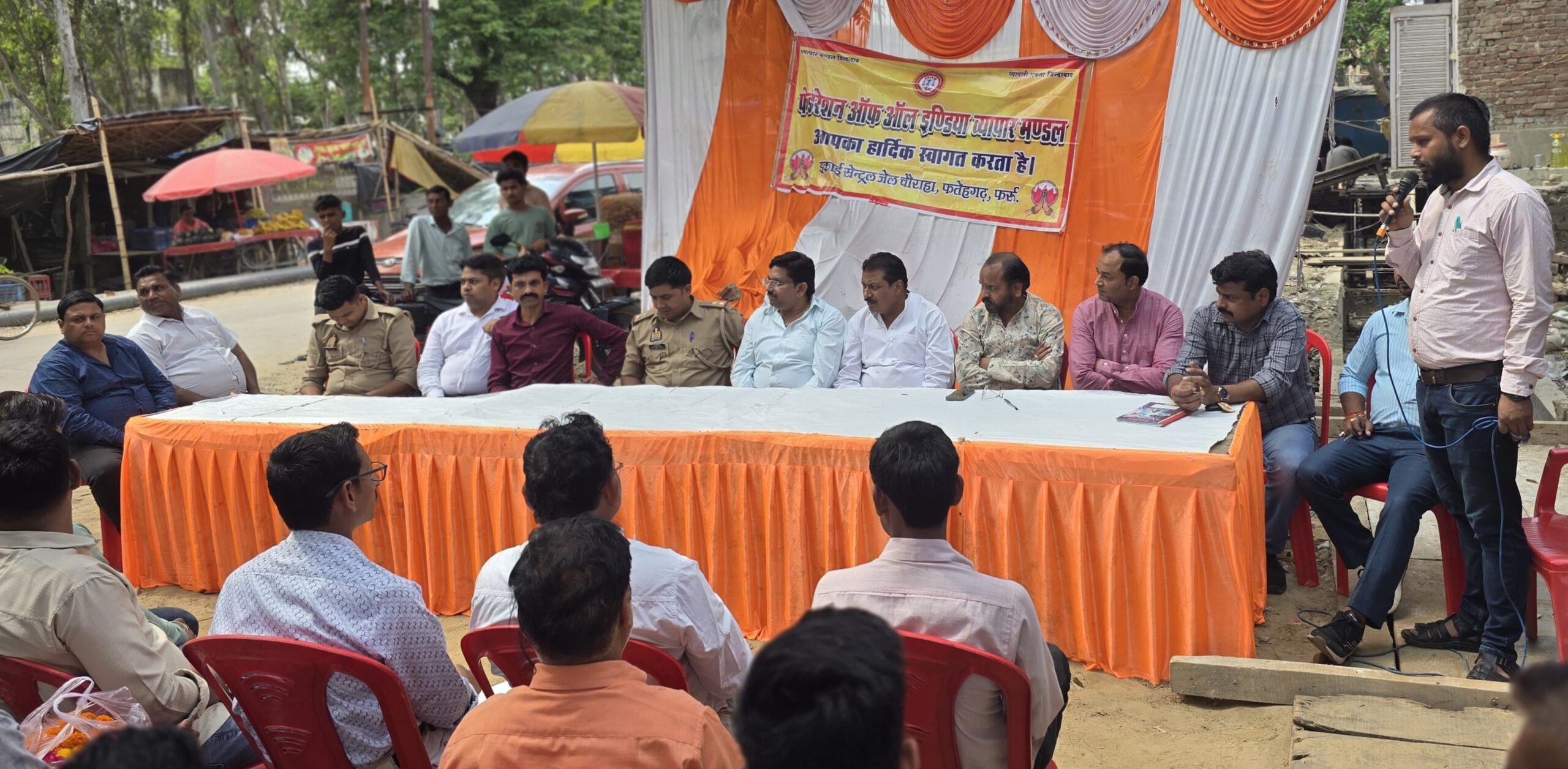 फर्रुखाबाद:(जेएनआई ब्यूरो) फेडरेशन ऑफ़ आल इंडिया व्यापार मंडल के प्रधान में सेंट्रल जेल इकाई की मासिक बैठक का आयोजन किया गया| बैठक में व्यापारियों की एक जुटता पर बल दिया गया| संगठन के महामंत्री देवेंद्र सक्सेना के प्रतिष्ठान पर व्यापार मंडल की मासिक बैठक का आयोजन किया गया | जिलाध्यक्ष मनोज मिश्रा नें कहा की संगठन व्यापारी हित में कंधे से कंधा मिलाकर खड़ा है | किसी भी प्रकार की समस्या होने पर संगठन साथ खड़ा दिखेगा| जिला महामंत्री विमलेश मिश्रा नें बताया की सभी व्यापारी संगठन के निर्देशों का पालन करे और सड़क के ऊपर अपनी ठेली व वाहन खड़ा ना करें | इसके साथ ही मीट दुकानदारों को अपना कारोबार पर्दे में करने का आवाहन किया | सेन्ट्रल जेल इकाई के अध्यक्ष योगेश गुप्ता व महामंत्री डॉ. संजीव त्रिपाठी व देवेंद्र सक्सेना नें चौराहे पर व्यापारियों के लिये एक शौचालय का निर्माण कराने की मांग की | संरक्षक अजय यादव नें कहा की व्यापारी हित सर्वोपरी है, लिहाजा हमें एक जुट होने की जरूरत है | चौकी प्रभारी व यातायात प्रभारी सम्मानित व्यापार मंडल के द्वारा सेन्ट्रल जेल चौकी प्रभारी शिव कुमार व यातायात प्रभारी सतेन्द्र कुमार को सम्मानित किया गया | चौकी प्रभारी नें सभी को सुरक्षा का भरोसा दिया और यातायात प्रभारी सतेन्द्र कुमार नें सलाह देकर कहा की कोई भी व्यापारी सड़क पर ठेली ना खड़ा करे| जिससे की सड़क पर जाम की समस्या रहे| अनूप दुबे व्यापार मंडल याकूतगंज अध्यक्ष, आशाराम सेन्ट्रल जेल कमेटी के मंत्री सेन्ट्रल जेल व्यापार मंडल की तरफ से याकूतगंज व्यापार मंडल अध्यक्ष अनूप दुबे को मनोनीत किया गया | इसके साथ ही पाल सेना के वरिष्ठ उपाध्यक्ष आशाराम पाल को व्यापार मंडल का जिला मंत्री मनोनीत किया गया| इसके साथ ही अवधेश सक्सेनl व राहुल यादव राजीव सक्सेना को उपाध्यक्ष, शैलेश राजपूत मीडिया प्रभारी, अवनीश कुमार को मंत्री बनाया गया है | अधिवक्ता प्रवेन्द्र उपाध्याय को विधिक सलाहकार मनोनीत किया गया था | इस दौरान आचार्य सर्वेश कुमार शुक्ल, वरिष्ठ उपाध्यक्ष अमित मिश्रा, उपाध्यक्ष अर्पित अग्निहोत्री, डॉ. रवि राजपूत आदि प्रमुख रूप से रहे| संचालन शिवम दुबे नें किया|