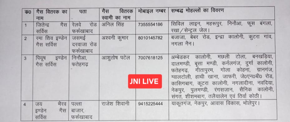 फर्रुखाबाद:(जेएनआई ब्यूरो) फतेहगढ़ स्थित बलराम जी गैस वितरक की डीलरशिप अस्थायी रूप से निलंबित कर दी गई है। यह कार्रवाई इंडियन ऑयल कॉरपोरेशन के सक्षम अधिकारियों द्वारा पार्टनर देशदीपक के निधन के बाद उत्पन्न पारिवारिक विवाद के चलते की गई है। जानकारी के अनुसार, बलराम जी गैस एजेंसी के पार्टनर देशदीपक पुत्र स्व. छविराम के निधन के बाद उनके परिवार और अन्य साझेदारों के बीच मतभेद हो गए थे। इसके चलते गैस कंपनी ने जनहित को ध्यान में रखते हुए डीलरशिप को फिलहाल निलंबित कर दिया है। उपभोक्ताओं को किसी प्रकार की असुविधा न हो, इसके लिए एजेंसी से जुड़े विभिन्न मोहल्लों को जिले के अन्य गैस वितरकों से अस्थायी रूप से संबद्ध किया गया है। इनमें रेलवे रोड स्थित जितेंद्र सर्विस गैस, जसमई दरवाजा रोड की रमा शिव इंडेन गैस सर्विस, निनौआ फतेहगढ़ की पियूष इंडेन गैस सर्विस तथा बाजार फर्रुखाबाद स्थित जय भैरव पल्ला इंडेन सर्विस शामिल हैं।इन एजेंसियों को अलग-अलग क्षेत्रों के उपभोक्ताओं की आपूर्ति की जिम्मेदारी सौंपी गई है, जिनमें सिविल लाइन, महरूपुर, निनौआ, फूस बंगला, केंद्रीय जेल क्षेत्र सहित कई मोहल्ले शामिल हैं।जिला पूर्ति अधिकारी सुरेन्द्र यादव ने सभी उपभोक्ताओं से अपील की है कि वे अपने संबंधित नए गैस वितरक से संपर्क कर ई-केवाईसी प्रक्रिया पूरी करें और बुकिंग के बाद होम डिलीवरी के माध्यम से गैस प्राप्त करें।