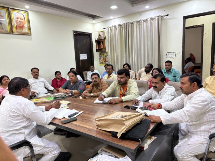 फर्रुखाबाद:(जेएनआई ब्यूरो)भारतीय जनता पार्टी के आवास विकास स्थित जिला कार्यालय पर जिलाध्यक्ष फतेहचंद वर्मा की अध्यक्षता में जिला पदाधिकारियों की महत्वपूर्ण बैठक आयोजित की गई। बैठक में 14 अप्रैल को मनाई जाने वाली भारत रत्न डॉ. भीमराव अंबेडकर जयंती एवं नारी वंदन अधिनियम 2026 के तहत होने वाले कार्यक्रमों की रूपरेखा तय करते हुए आवश्यक दिशा-निर्देश दिए गए।