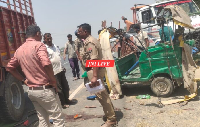 हाई-वे पर टैम्पो व ट्रक की भिड़ंत, मासूम सहित तीन की मौत, आधा दर्जन घायल
